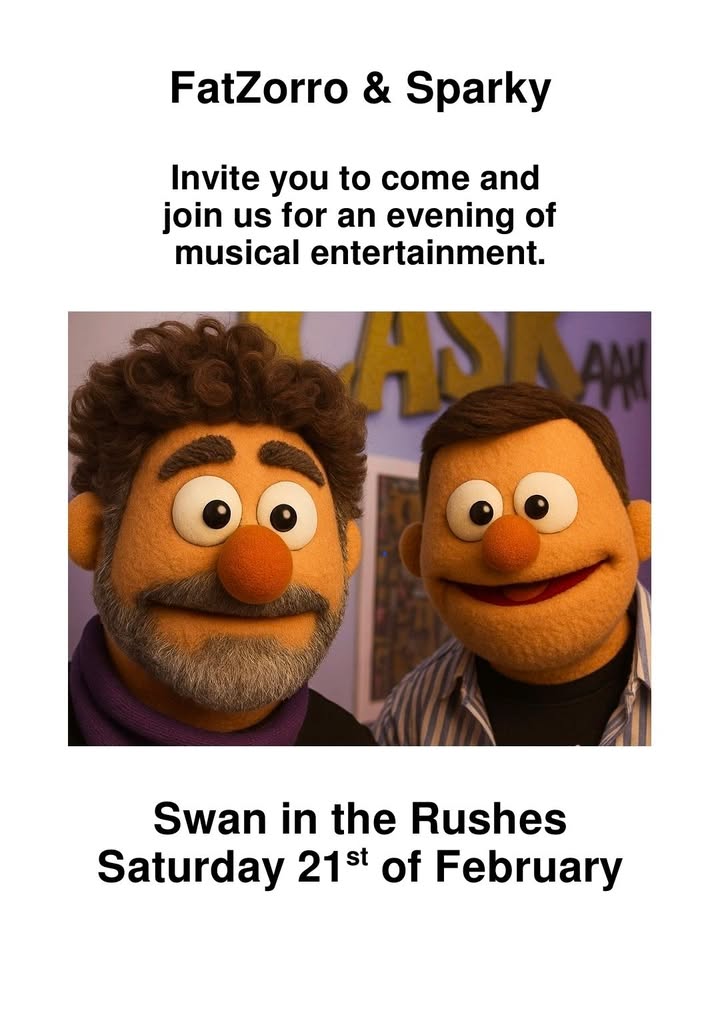 We have the incredible FatZorro & Sparky playing in the bar on Saturday! Join us and them from 7pm for some sing-a-long classics!