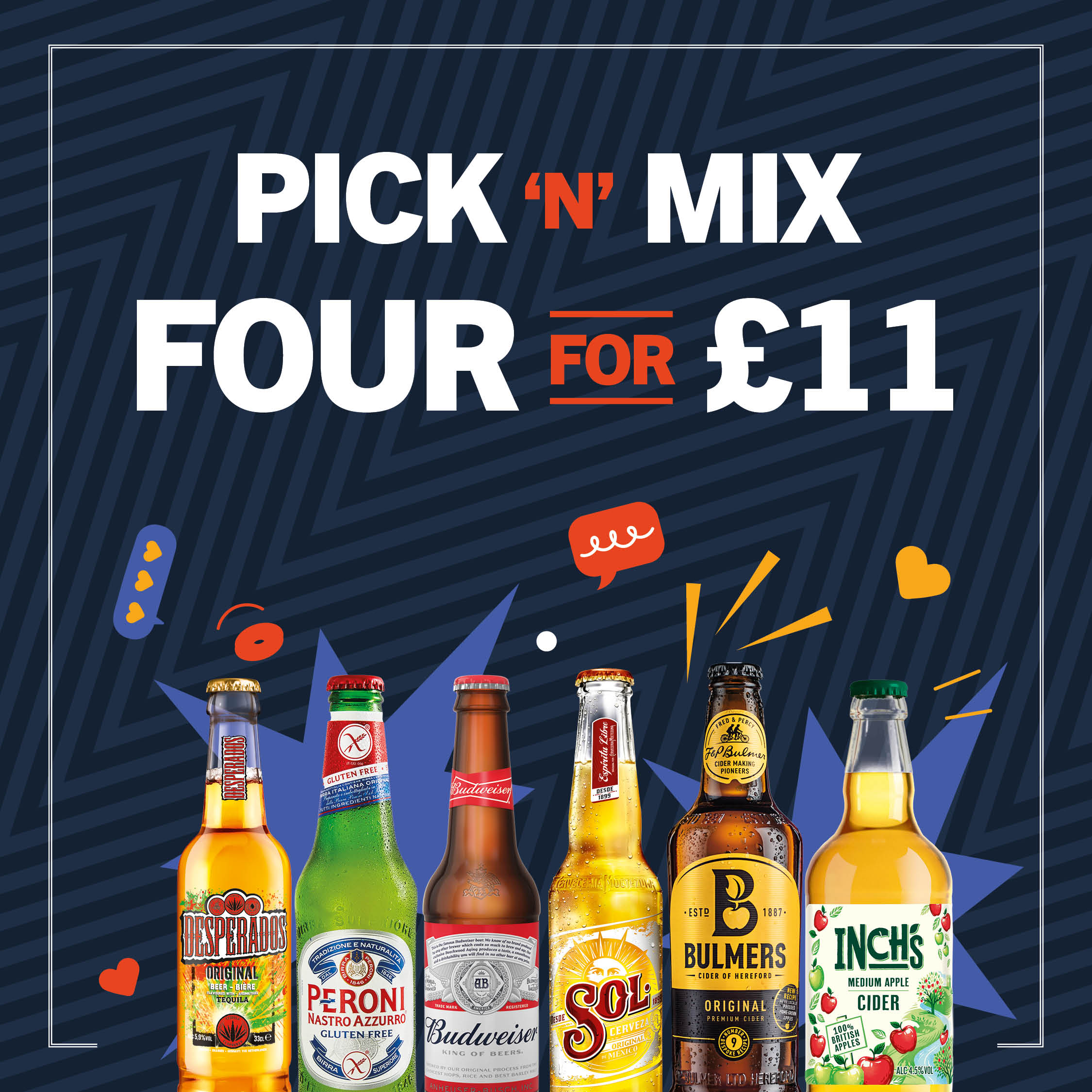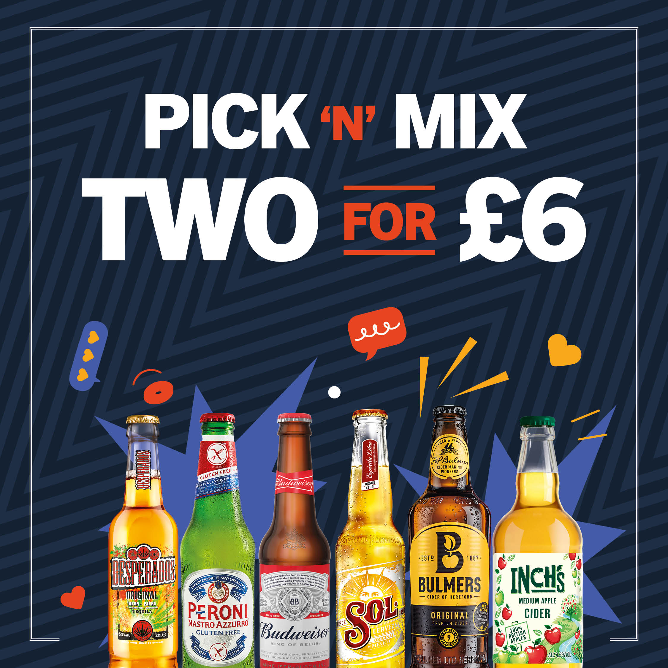 Whether you're a familiar face or a weekend seeker of good times, we’ve got a drink for everyone! Alongside your favourite lagers, ciders, and ales on tap, discover a range of wines, spirits, cocktails, and soft drinks. Scroll down to take a look at our drinks menu, latest offers and more!